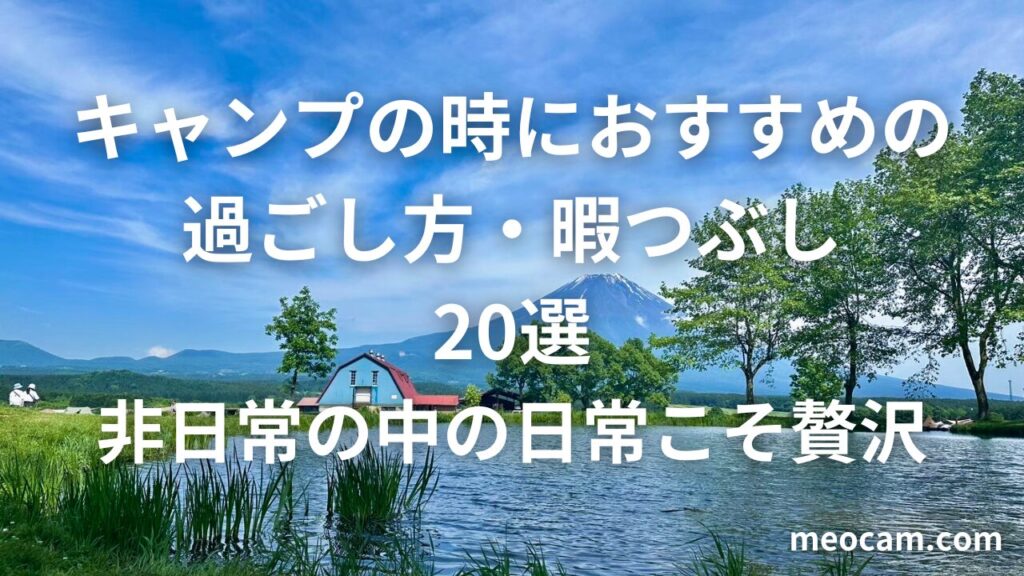 キャンプ中って何してるの? 時間を持て余して暇になっちゃった キャンプしてみたいけど何していいのか分からない 設営をサッと済ませていざ自由時間、何をしていいのか分からず手持ち無沙汰になってしまったという経験がある方、いらっしゃると思います ... -