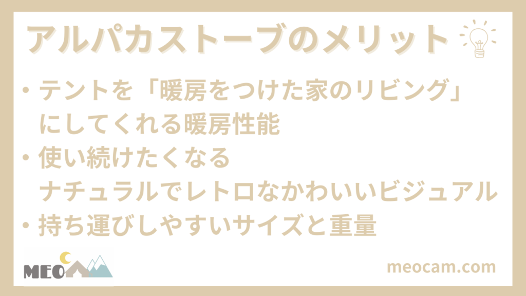 アルパカストーブのメリットは全部で3つです