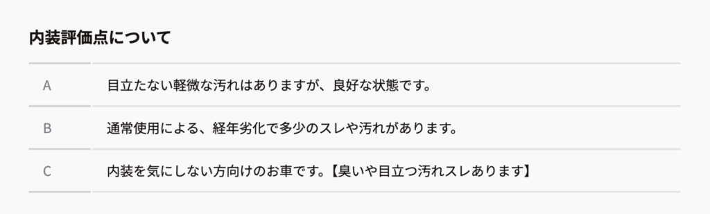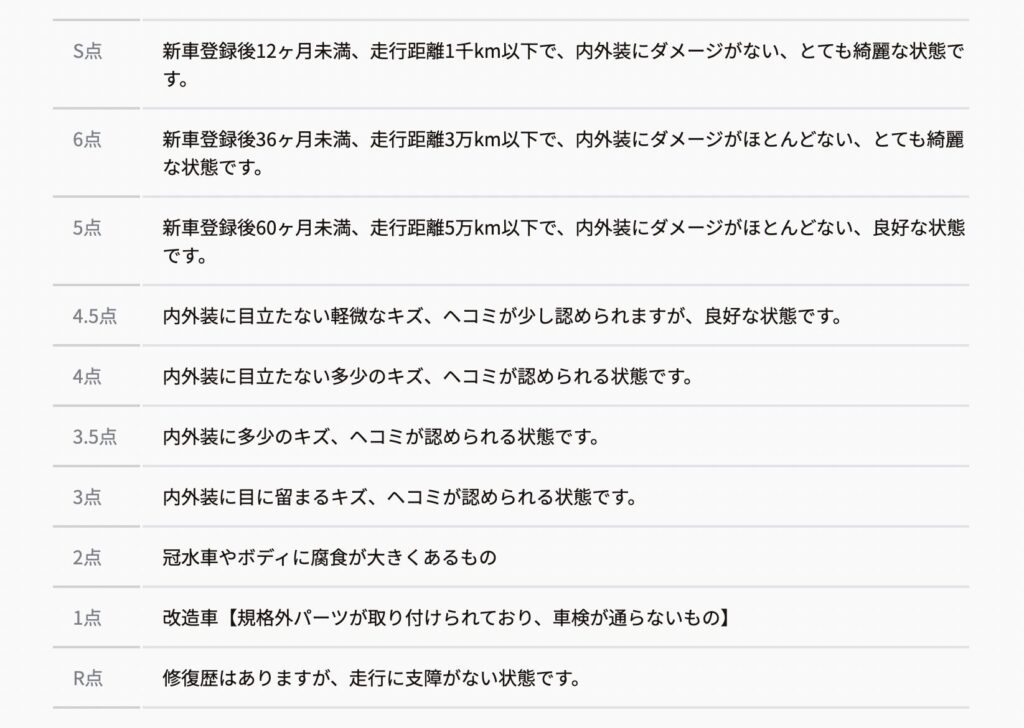中古車だと大体4.5点が最高評価という感じらしいので、4点はそこそこ状態のいい中古車ということになります