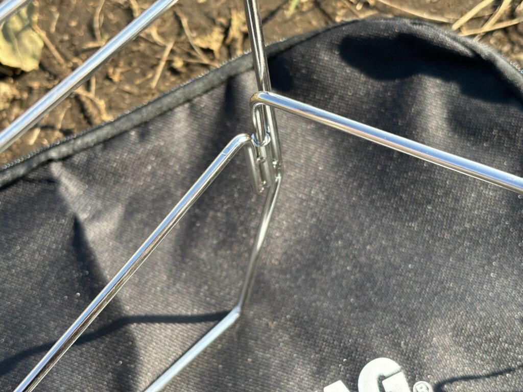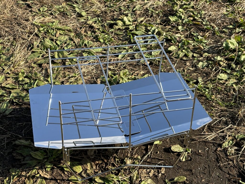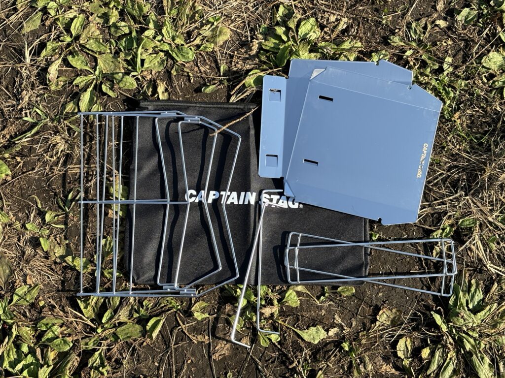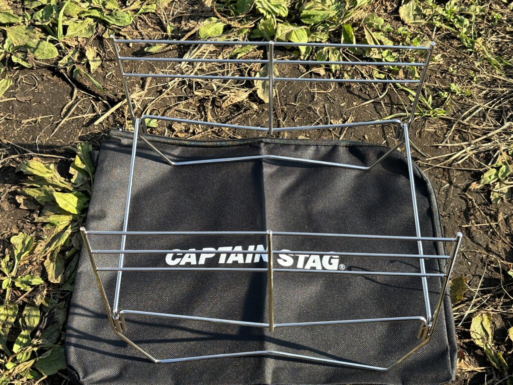 安い、軽い、薄いのに、40cmの薪をガシガシ載せて焚き火できるので、コスパはかなりいいと思います