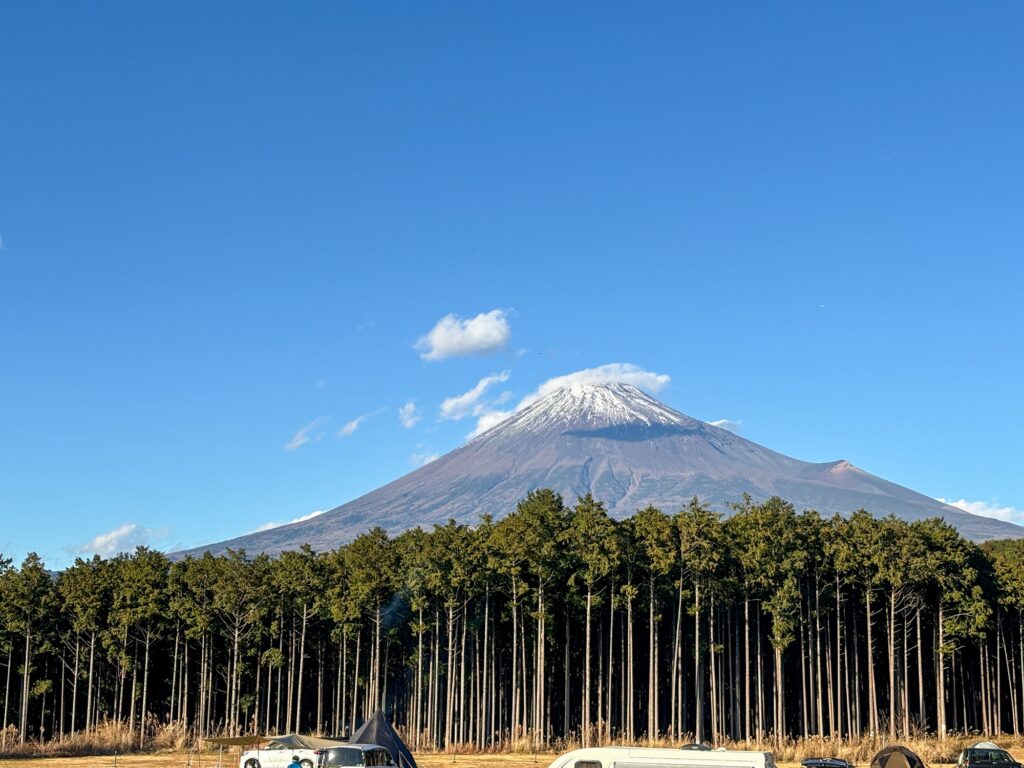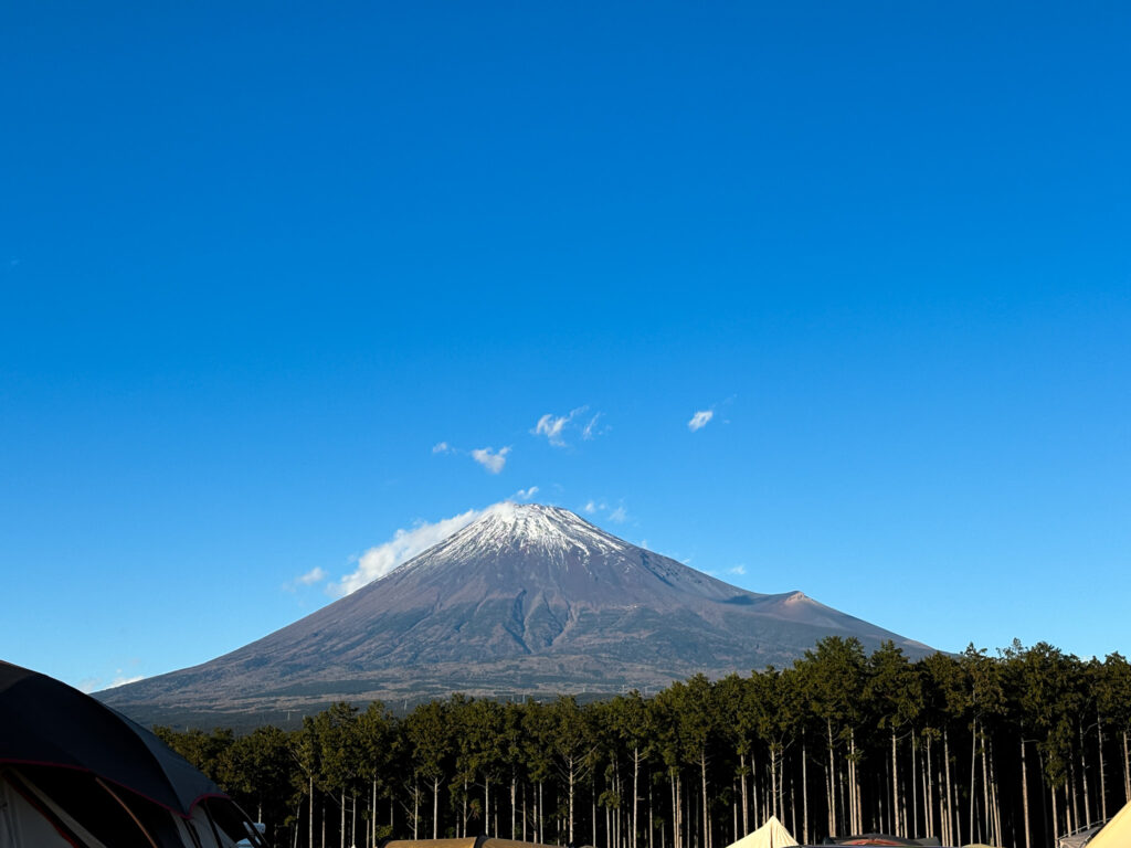 ふもとっぱらキャンプ場ほど目の前にドーンという感じではないですが、木で隠れることもなく富士山を楽しめました!