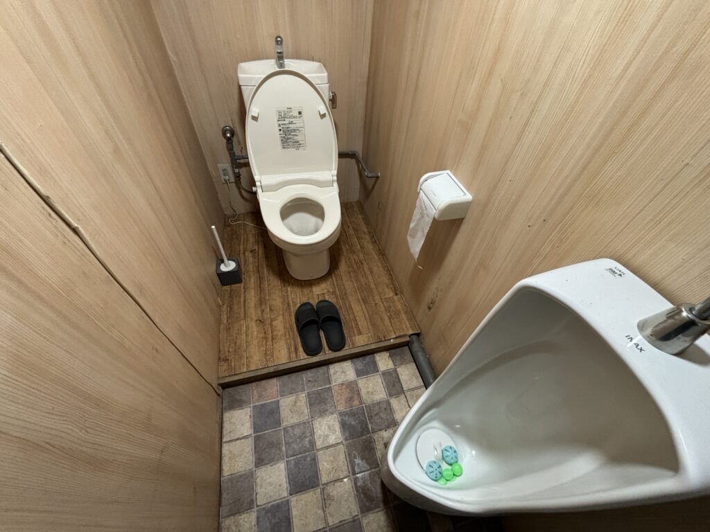 トイレは完全屋内個室で、大きい方は靴を脱いで使うタイプです