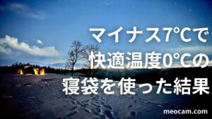 マイナス7℃の環境で一晩過ごして感じたのは「快適使用温度0℃の寝袋が使える下限温度はマイナス4〜5℃くらい」ということです
