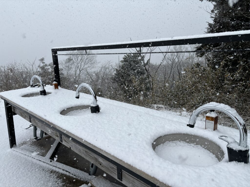 僕たちが泊まった時は大雪でこんな感じになっていましたが、バッチリお湯出ました
