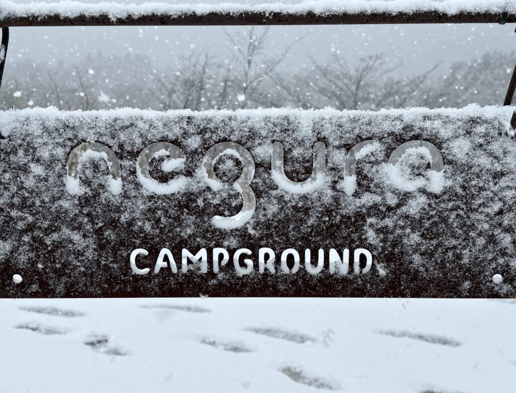 僕たちが初めて泊まった日はドカ雪で、キャンプ場の周りの幹線道路が全部通行止めになってしまいました