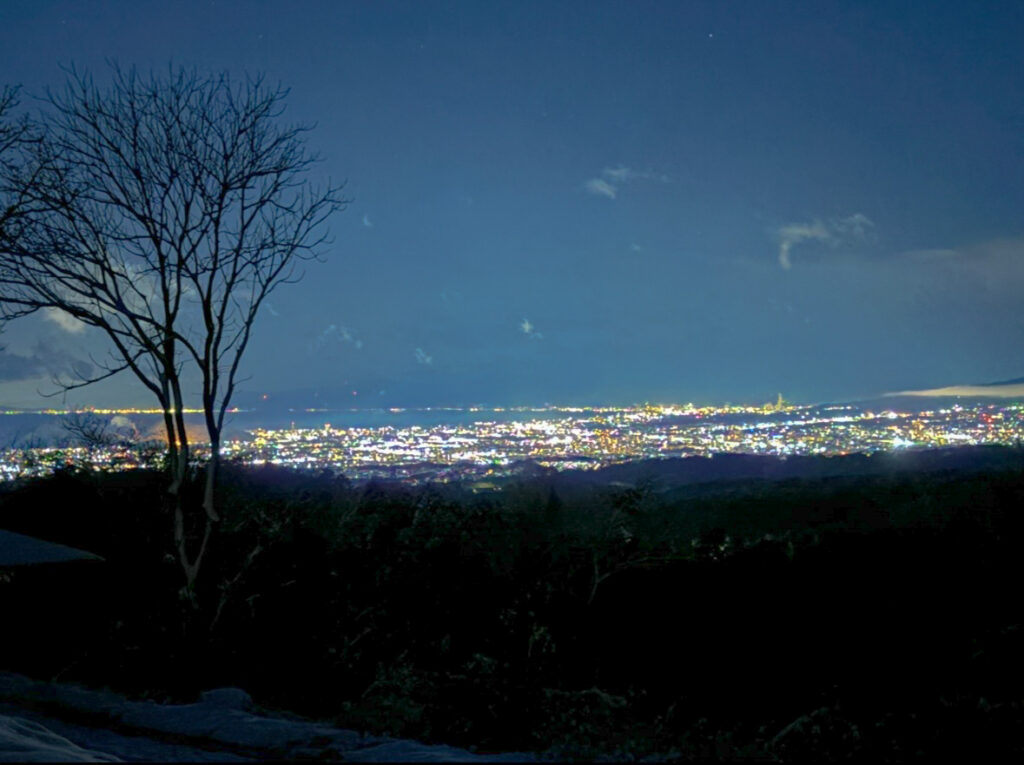 市街地から遠すぎず、かといって近すぎない絶妙な距離のおかげで、光の粒が輝いて見えるのかな〜と夜景を見ながらぼんやり考えていました
