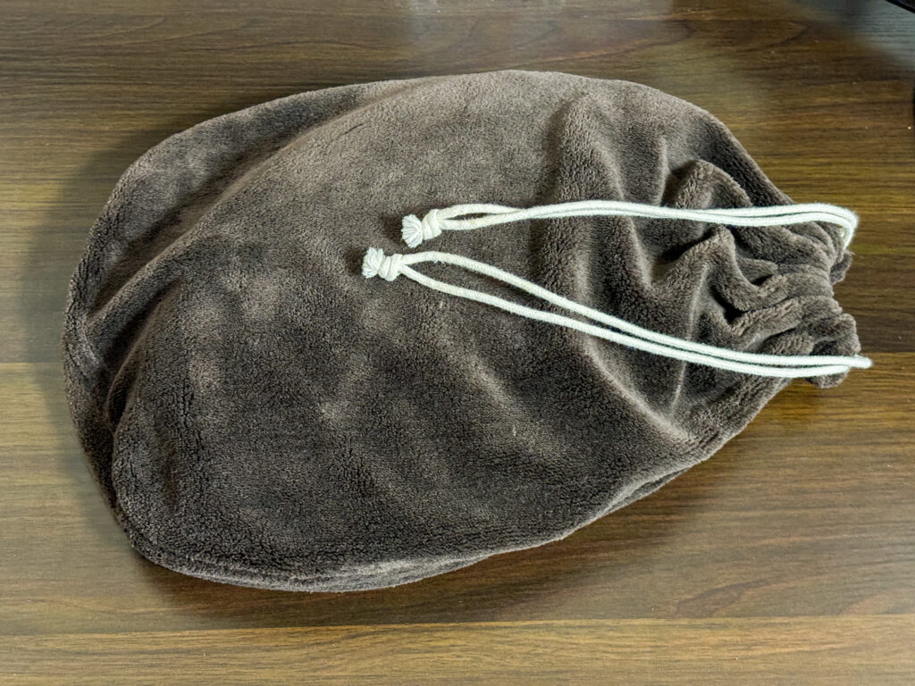 僕たちは巾着型のカバーを使っているので、紐の部分に腕を通して持ち運んでいます